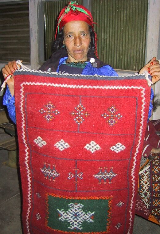 This is Fadma Bouhassi, one of the two women leaders in N'kob. The village development association asked the villagers to choose women who had leadership qualities, and they were given training in several areas, including health, nutrition, family planning, communication, and conflict resolution. She made the two rugs below.