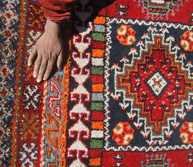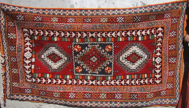 The rug below was made by Rahma Elhakimi, who did not want to be photographed. Her husband buys and sells livestock, and they have two sons and two daughters. Two of the children are in school, and the other two are still too young.