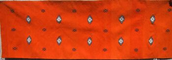 Piece 3.13657 is a flatweave runner in bright gold with regular designs in the "woven embroidery" in navy blue, white and a bit of bright red. While it looks very orange here, I recall (and recorded) it as a more gold or yellow tone. You can see the designs better in this close-up. It measures 2'6" x 8' (76 x 243 cm) and costs $225. SOLD