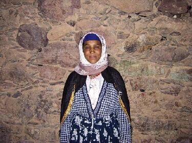 This is Fadma Id Lehsen Afkir. She has three young children, two boys 8 and 11 and a daughter of 5. Her husband works in agriculture - if it rains, which it has done very little in the last several years. The money she earns from weaving is spent on the children, for things like food and clothing.
