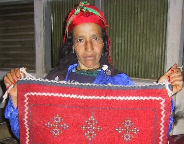 This is Fadma Bouhassi, one of the two women leaders in N'kob. The village development association asked the villagers to choose women who had leadership qualities, and they were given training in several areas, including health, nutrition, family planning, communication, and conflict resolution. She made the two rugs below.