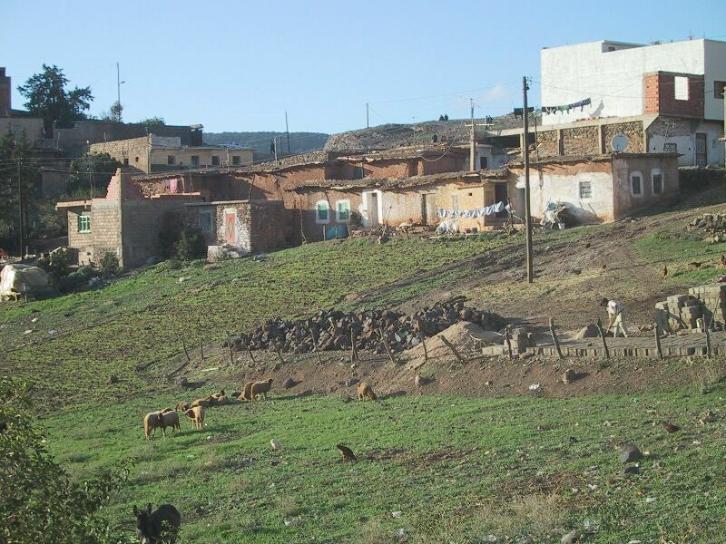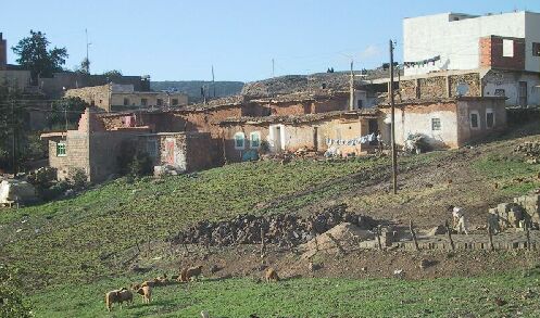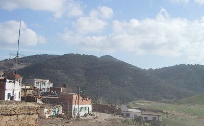 This is the village of Ben Smim. You can see how it is set in the mountains. If you click on the photo you can see more detail, including the light post and TV antennas, so you know they have electricity. This is one of the few areas of Morocco with remaining forest cover. There is a cedar forest nearby, and pine and scrub oak also grow abundantly.
