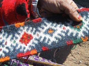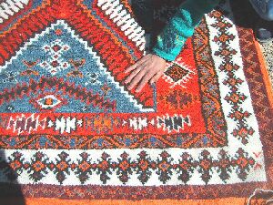 Piece 2.11408 is a small belt woven in the old style. You will see many of these in the Marrakesh bazaars, but they are not nearly so finely woven, and they use harsh colors, mostly red, blue and white. The colors here also include red and blue, but are much softer, and the design is much finer. You can click on the photo to see the detail. It is about 2 1/2 feet long and 3 inches wide and costs $65. SOLD, but this belt can be remade to order, and in different lengths.