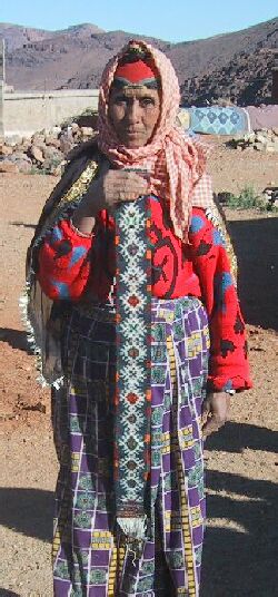 This photo is of the weaver of the rug above, Rahma. She is standing in the N'kob schoolyard, where many of the rugs were photographed, and you can see some of the village trees and the surrounding mountains behind her.