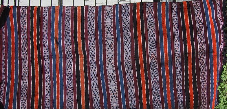 Remember, click on the small photo to see the rug full screen, and on the underlined word in the description to see the great detail that's hard to capture for the whole piece with a digital camera. Note: some of the photos below have dark areas on them: they are shadows from tree branches, not anything on the rugs. Also, all prices include packing and insured shipping.