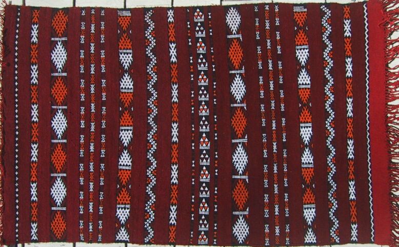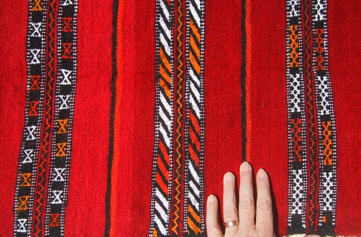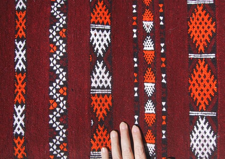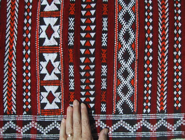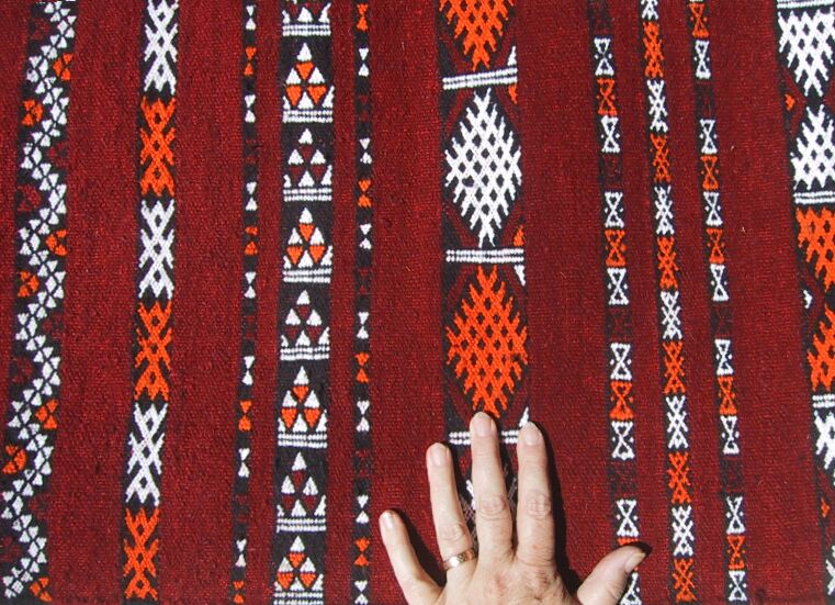 Piece 4.14550 has a different unique design band, the one Berbers often use and call hatif, to the left of my hand in the close-up. It measures about 28.5" x 45.5" and costs $70.